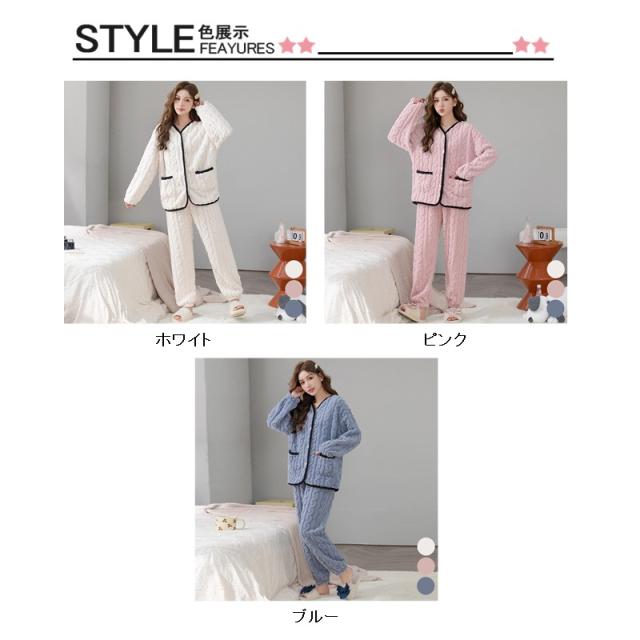 パジャマ レディース ルームウェア モコモコ 上下セット 裏ボア 裏起毛 秋 冬 寝巻き 長袖 上下セット 部屋着 寝間着 フラン