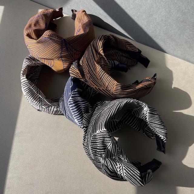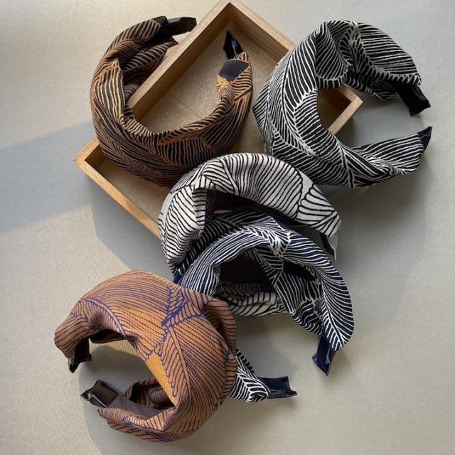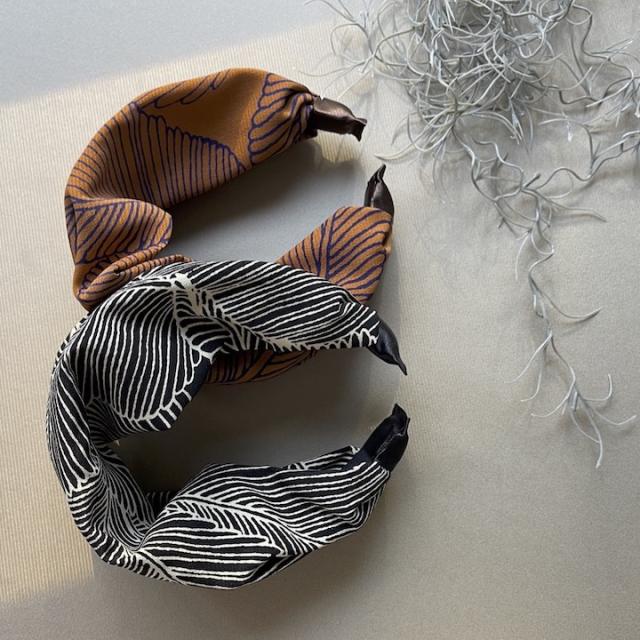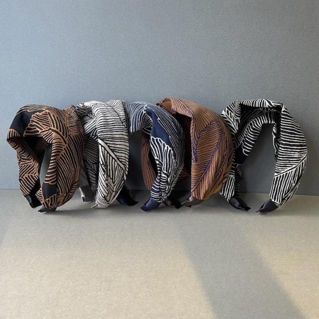 大人可愛いリーフ柄の幅広カチューシャ。大人っぽく落ち着いた色味で髪に馴染みます!