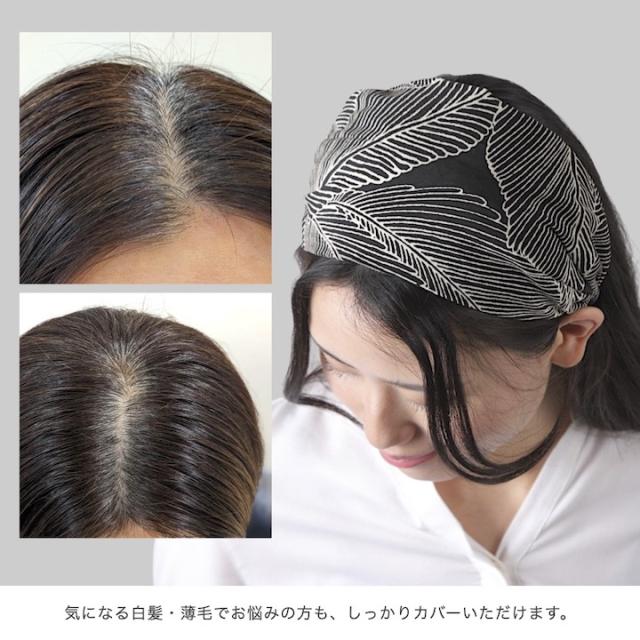大人可愛いリーフ柄の幅広カチューシャ。白髪隠しや薄毛隠し、プレゼントにも人気。