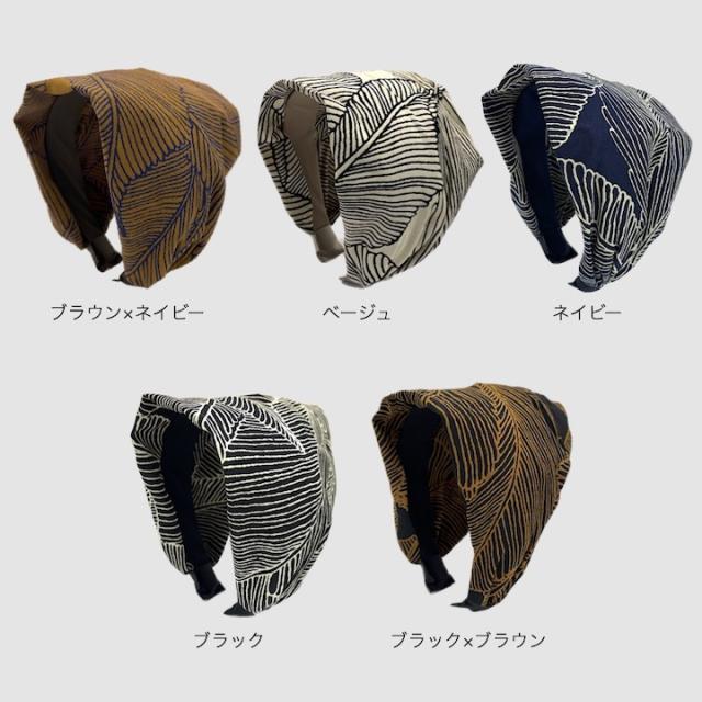 カチューシャ 幅広 おしゃれ リーフ 柄 白髪隠し 薄毛隠し 幅広い 黒 ブラック ベージュ 紺 ネイビー ブラウン 幅広 ヘアバンド ヘアアクセサリー ターバン まとめ髪 普段使い 大人 可愛い おしゃれ 母の日 自然【MOORN/モーン】MRN-KA23054