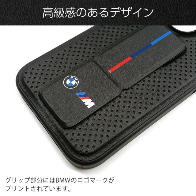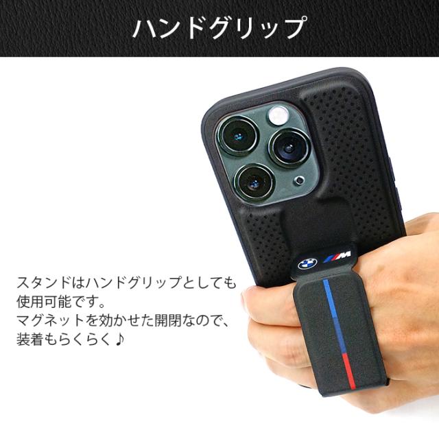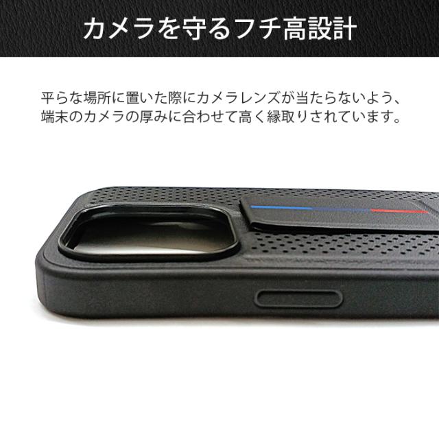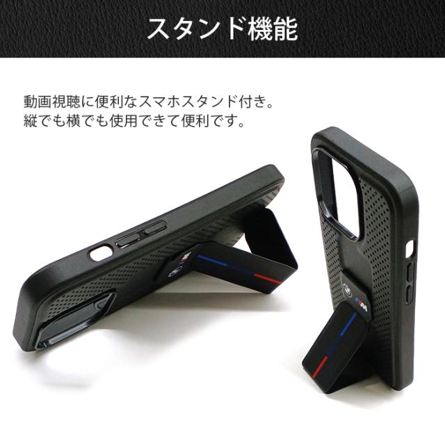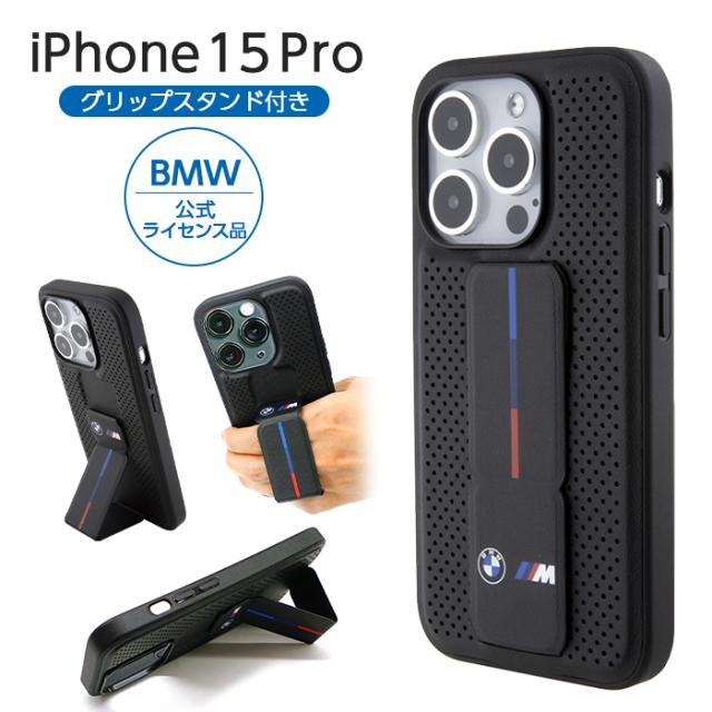 iPhone 15 Pro ケース BMW iPhone15Pro カバー レザー スタンド付き グリップスタンド スマホケース ブランド おしゃれ メンズ ブラック