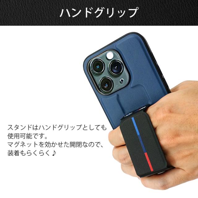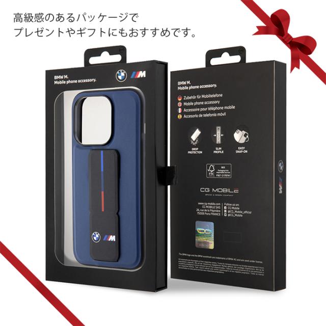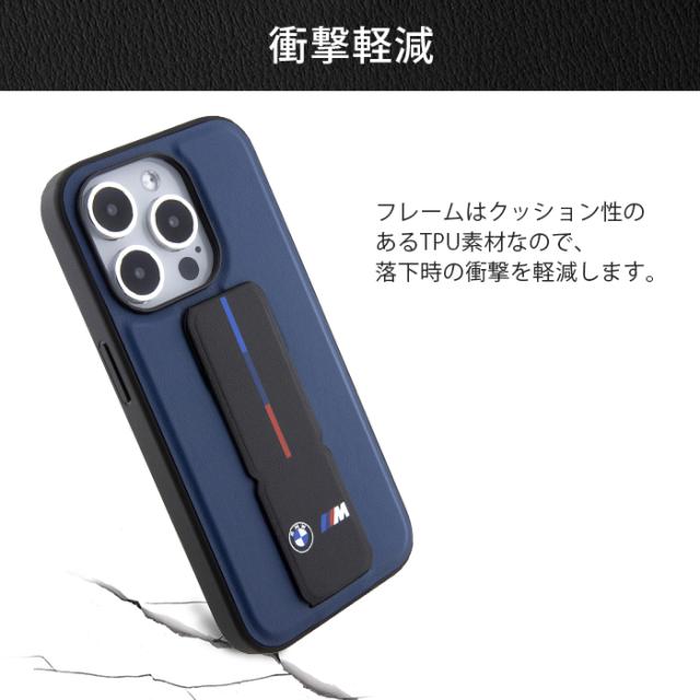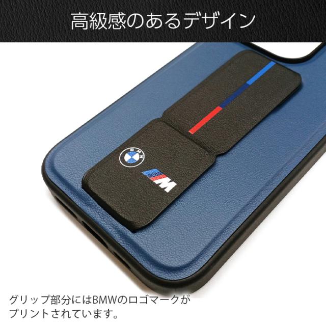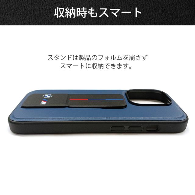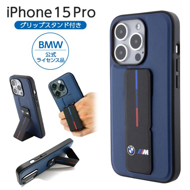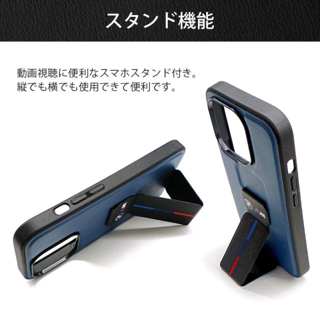 iPhone 15 Pro ケース BMW iPhone15Pro カバー レザー スタンド付き グリップスタンド スマホケース ブランド おしゃれ メンズ ネイビー