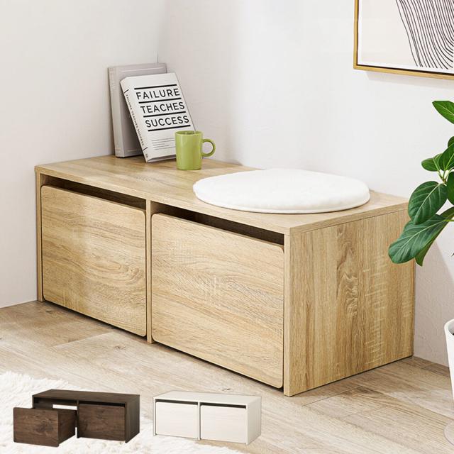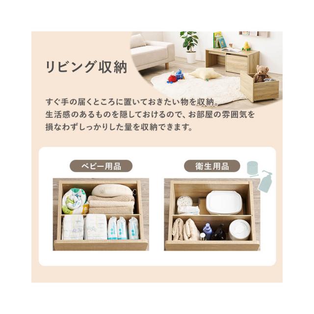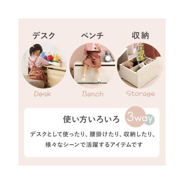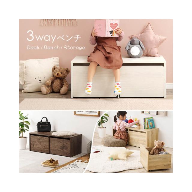 ワゴン付き収納ベンチ 3Way デスク ベンチ 収納 幅90 木目調 引き出し 収納家具 リビング収納 すっきり収納 キッズ収納