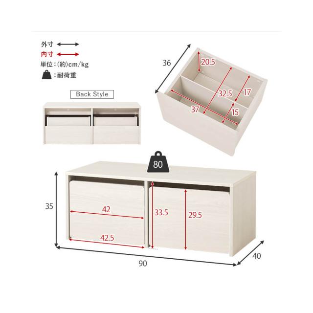 本体サイズ: 幅 90cm × 奥行 40cm × 高さ 35cm (座面高 35cm)耐荷重: 約80kg