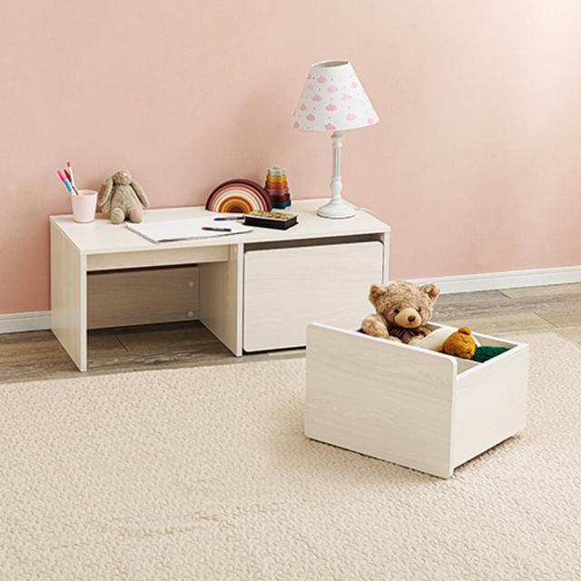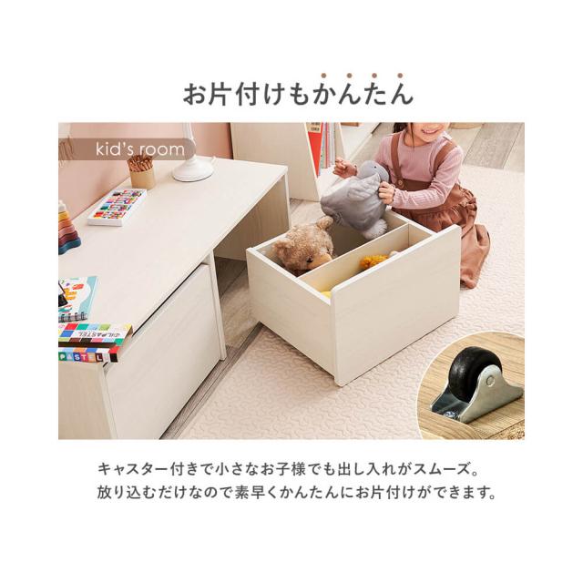 さらに、ベンチ下にはキャスター付きのワゴンが取り付けられ、小さなお子様でも簡単に出し入れができます。