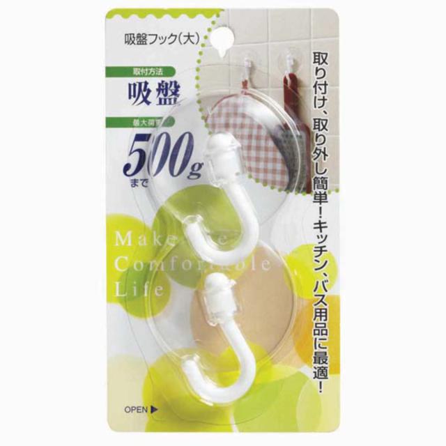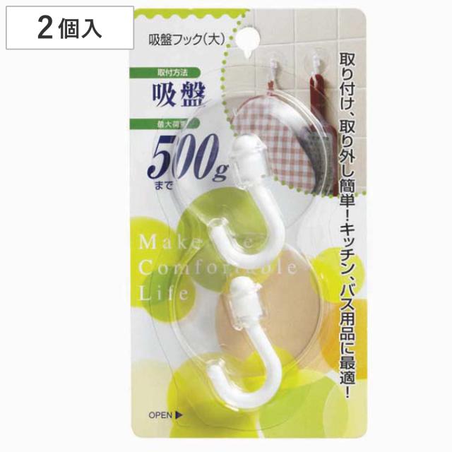 フック 吸盤フック 大 耐荷重500g ( 吸盤 吸着 収納 壁掛け 引っ掛け 吊り下げ キッチンフック キッチン収納 小物掛け キッチン用品 バス用品 2個入り 2個 タイル ガラス 壁面収納 )