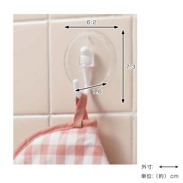 | サイズ | 約 幅6.2×奥行1.6×高さ7.3(cm) 吸盤直径:約 6.2(cm) |
