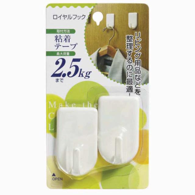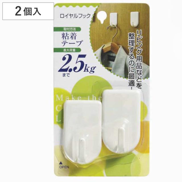 ロイヤルフック 耐荷重2.5kg ( 粘着 収納 壁 引っ掛け 壁掛け 吊り下げ 壁面収納 粘着テープ 小物掛け ツールフック 小物フック 収納フック キッチン用品 2個入り 2個 キッチンフック キッチン収納 )