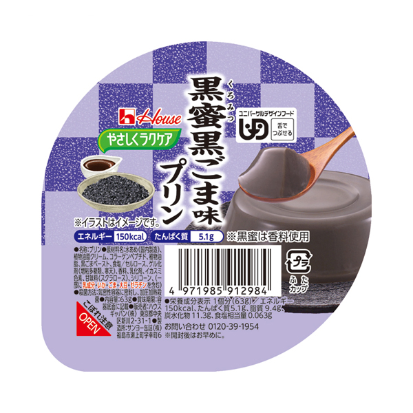 ハウスギャバン 介護食 区分3 やさしくラクケア 黒蜜黒ごま味プリン 091298 63g (区分3 舌でつぶせる) 介護用品