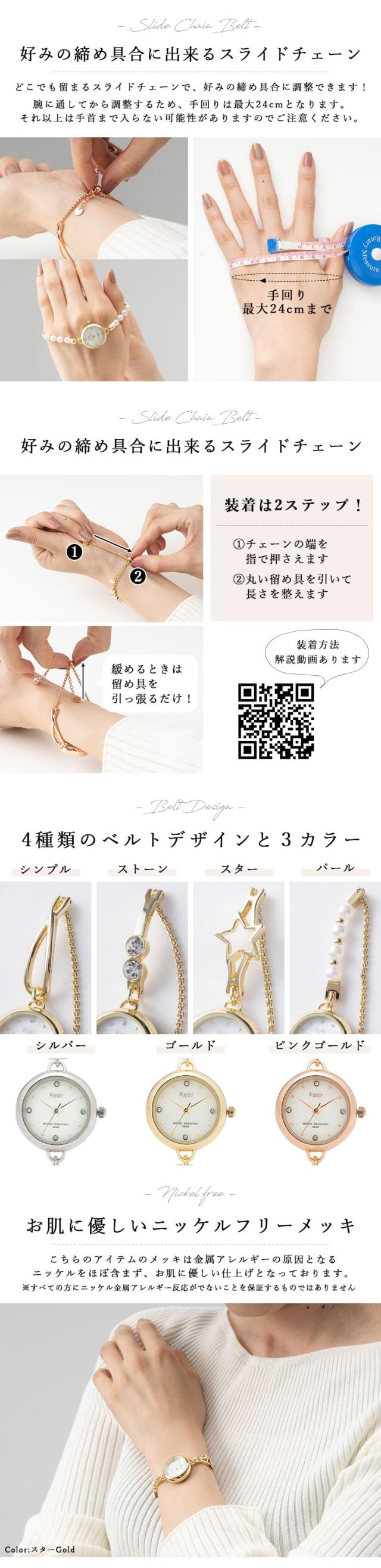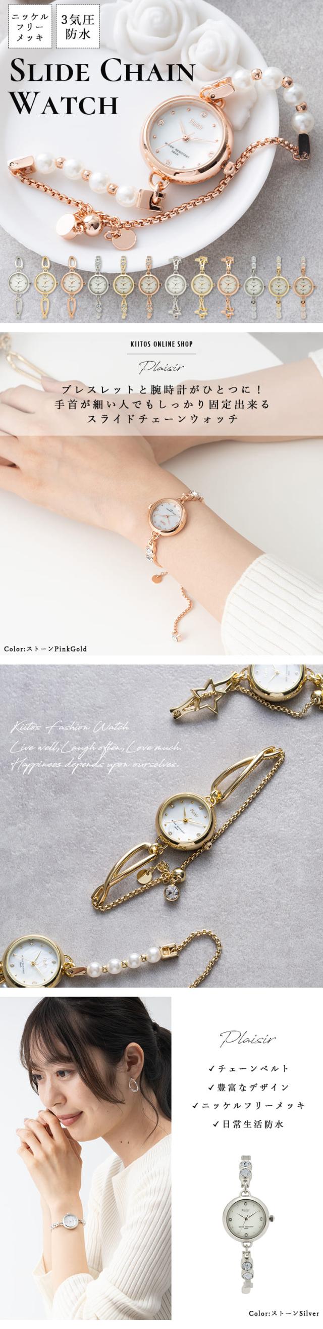 腕時計 レディース ニッケルフリー 3気圧防水 金属アレルギー対応 スライドチェーン ウォッチ かわいい おしゃれ 大人 名入れ Box付き ブランド 20代 30代 40代 見やすい クリスマス プレゼント ギフト 日本製ムーブメント 1年間のメーカー保証付き メール便送料無料
