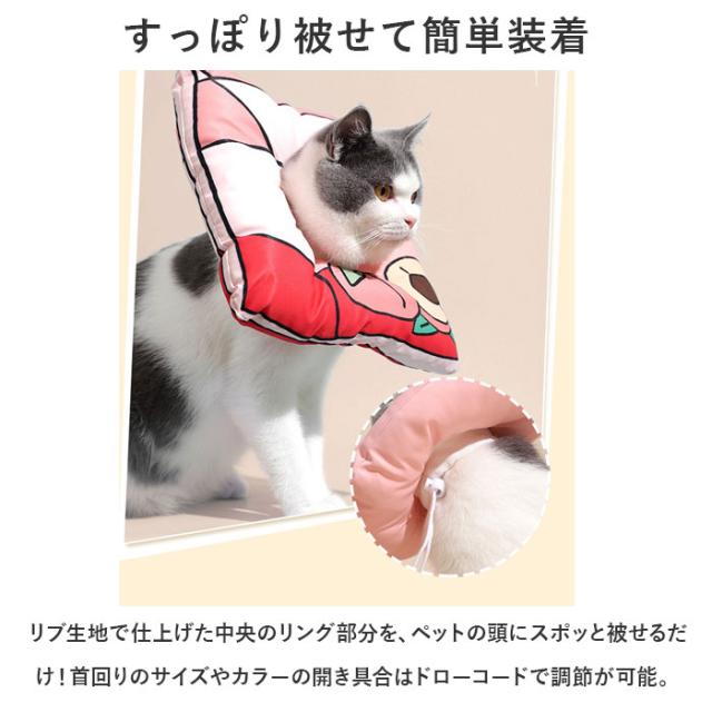 | 商品説明 | ・ふかふかクッションがワンちゃん、ネコちゃんの身体を優しくケア。軽量&ソフトな「エリザベスカラー」が新登場。 【キズ舐め、引っかき防止に効果的】 ・手術後や皮膚疾患などで治療中のペットが、患部を舐めてしまったり、噛んでしまうことを防ぐエリザベスカラー。 【ふんわりやわらか素材】 ・まるで、お昼寝クッションみたいに快適♪ぬいぐるみにも使われるポリプロピレン繊維をたっぷり充填した、ふんわり柔らか仕上げ! 【療養中のペットに優しいつくり】 ・エリザベスカラーが壁や家具などにぶつかったりした時のショックも軽減し、療養中のペットの身体を優しく保護。 【ごはんが食べやすいデザイン♪】 ・プラスチック素材のエリザベスカラーに比べて、柔軟性が高く、寝転んだときにもくつろぎやすいふわふわソフトな触感。お水を飲んだり、フードを食べる時にもストレスフリー。 【すっぽり被せて簡単装着】 ・リブ生地で仕上げた中央のリング部分を、ペットの頭にスポッと被せるだけの簡単装着!首回りのサイズやカラーの開き具合はドローコードで調節が可能。 【汚れも水滴もサッとひと拭き】 ・カラーの生地表面は水滴を弾くはっ水加工済み。食べこぼし汚れもサッと拭き取れて、お手入れも簡単!(※完全防水生地ではありません。) 【ピッタリサイズが見つかる♪】 ・ネコちゃんから小型〜中型のワンちゃんまで、ペットの身体のサイズに合わせて選べるS・M・Lサイズの3サイズ展開。 【ポップで賑やかなカラーリング】 ・ジューシーで鮮やかな色合いにペットのお顔が明るく華やぐ「オレンジ&ピーチ」のアニマルタイプから、コミカルなイラストに思わず笑顔がこぼれる「オニギリ&ピーチミルク」まで、ポット&キュートなカラーバリエーション。 |