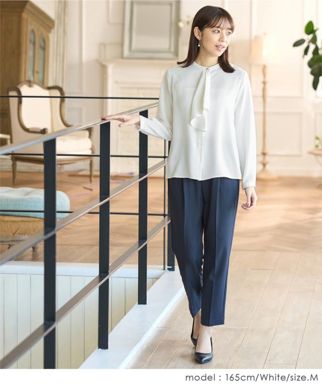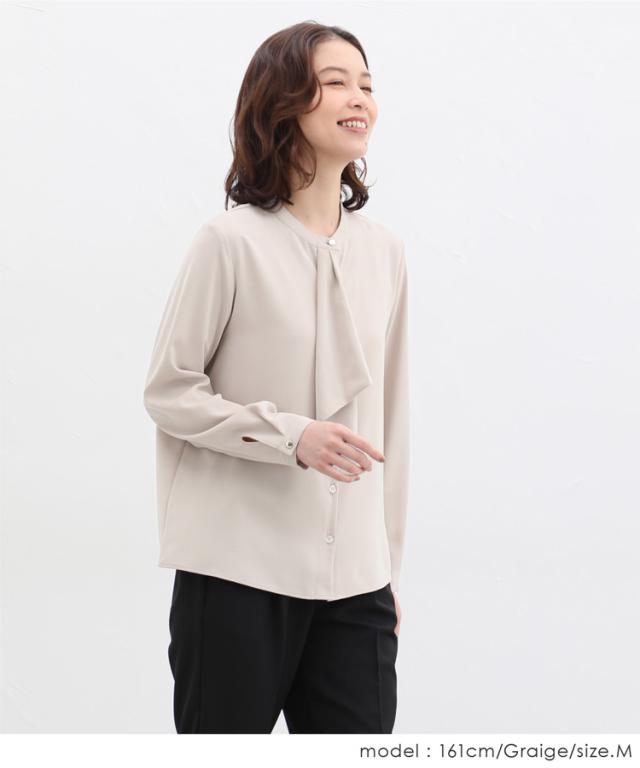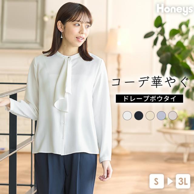 ブラウス 長袖 オフィス きれいめ おしゃれ 白 黒 セレモニー ボウタイ とろみ スーツ ゆったり SALE セール Honeys ハニーズ ボウタイブラウス