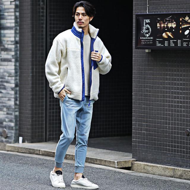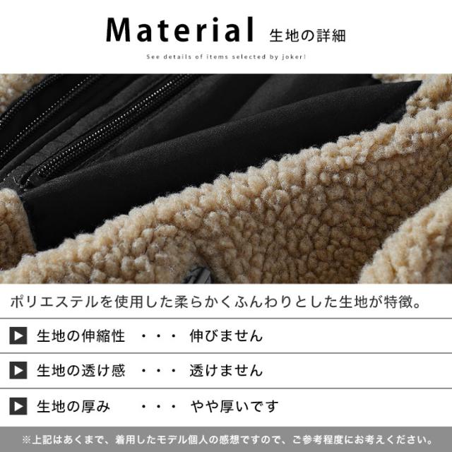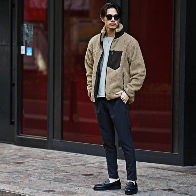 柔和に魅せるオトナのセンス『シープボアブルゾン』【シープボアブルゾン】■Design/デザイン季節を彩る柔和なボアブルゾン。ふわり柔らかな手触りでありながらボリューム感のあるシープボア生地を使用し、軽快かつ肉厚な着心地を楽しめる。 裏地にはメッシュを施すことで、ボア特有の袖通しの問題点を解消。首元部分やポケットは別布で切り替えを施しアクセントをプラス。冬は愛らしさと洒落感を併せ持つモコモコで決まり。■Material/素材感ポリエステルを使用した、程よい厚みとふわり柔らかな肌触りが特徴。肉厚ながら軽快に纏えるため長時間着用も苦にならない一着。