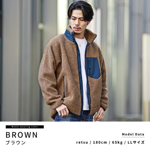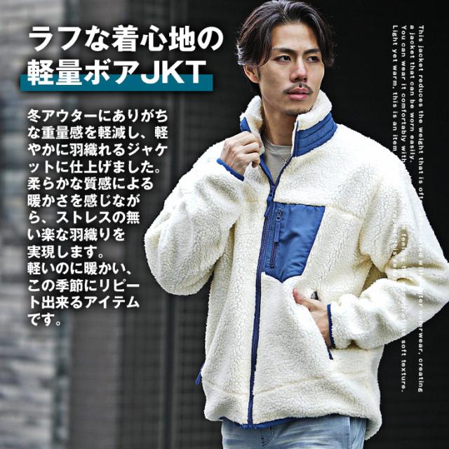 【送料無料】ボア ジャケット メンズ 大人 ボア ブルゾン ボアジャケット ボアブルゾン ベージュ ブラウン 黒 ブラック 白 ホワイト スタンドネック スタンドカラー ハイネック アウター ライトアウター 軽量 もこもこ 冬 冬服 冬物 秋冬 メンズファッション 冬新作 新作 at_f