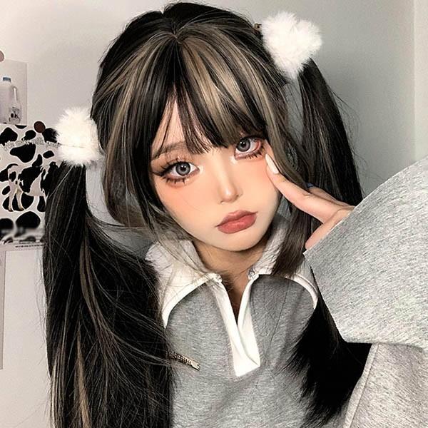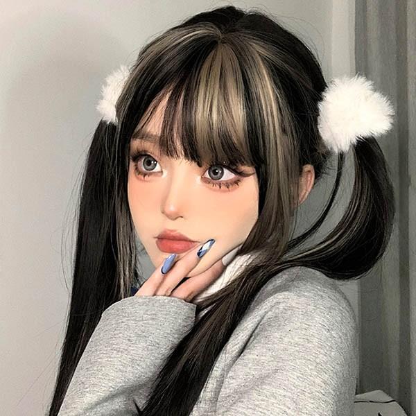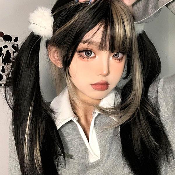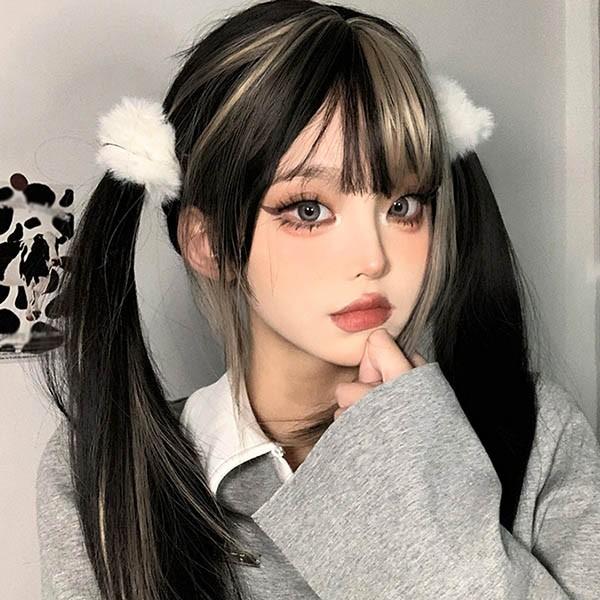 ウィッグ レディース フルウィッグ ロング メッシュ ストレート 黒髪 ぱっつん前髪 前髪あり 可愛い かわいい 大人用 コスプレ ロリータ ゴスロリ コスチューム 原宿風 仮装 超自然 かつら wig Lolita 小顔 文化祭 イベント 学園祭 ハロウィン dq116n1n1zr