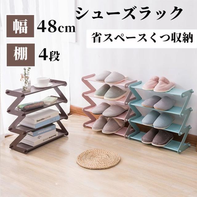シューズラック 4段 収納靴箱 シューズボックス 省スペースくつ収納 下駄箱 靴棚 玄関 収納 本棚にも おしゃれ 組み立て式 収納棚 小物入れ たっぷり 組み立て式 収納ラック Z字型自立靴ラックくつ収納置物
