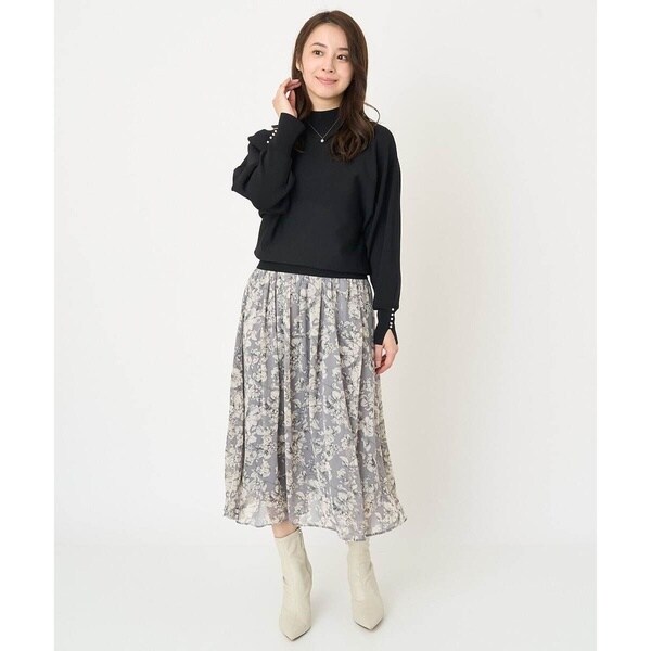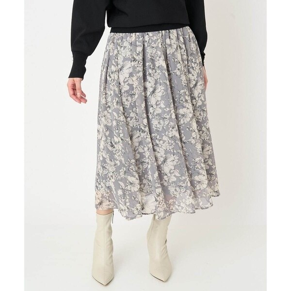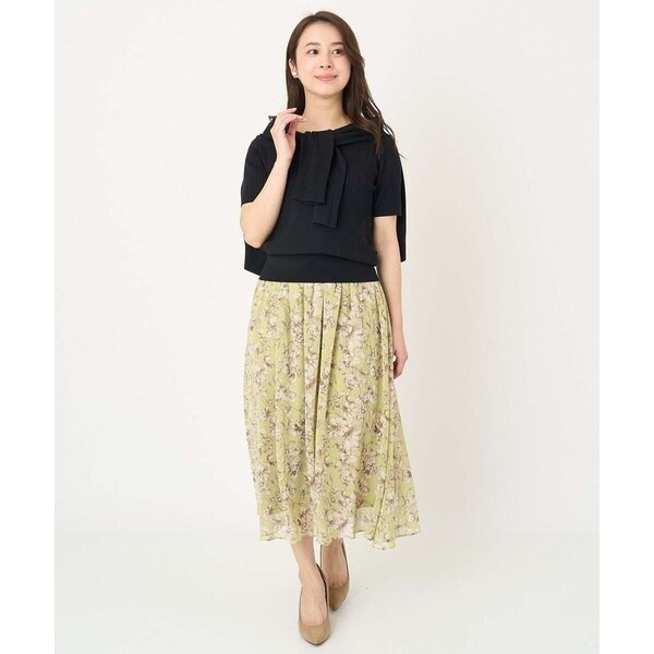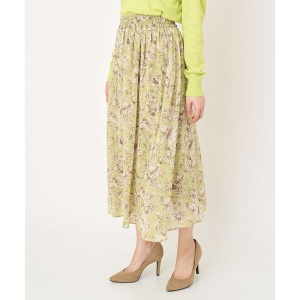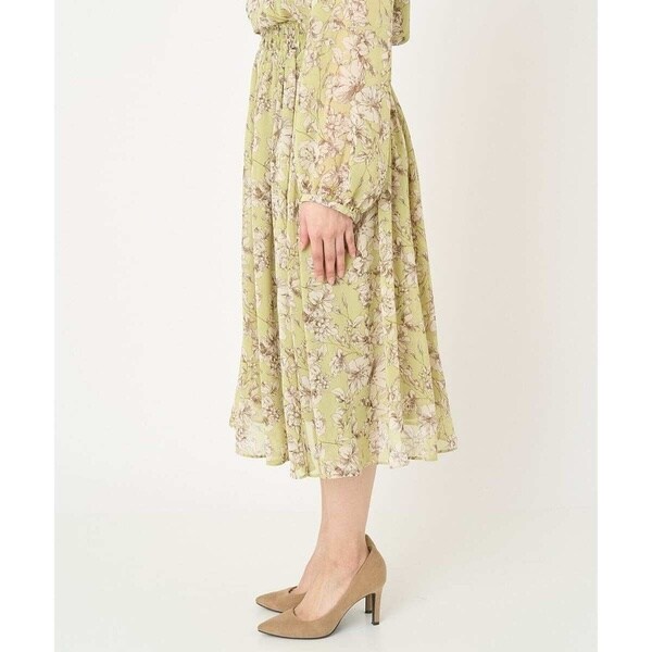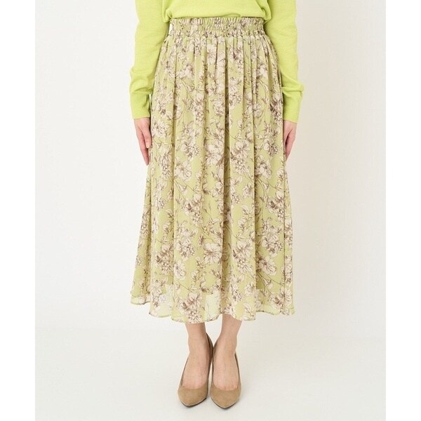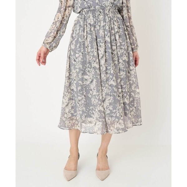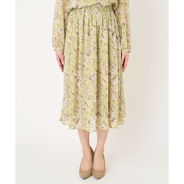 MK ミッシェルクラン(MK MICHEL KLEIN )/【小さいサイズ】ラインアートフラワーシフォンスカート/丈の長さが選べる/洗える