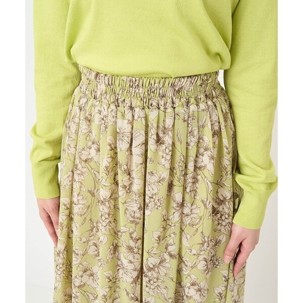 線画タッチの大きめな花柄が大人可愛い軽やかスカート。広がり過ぎないシルエットは大人がちょうどよく着こなせます。オールウエストゴム仕様でストレスフリーな着心地も嬉しい。