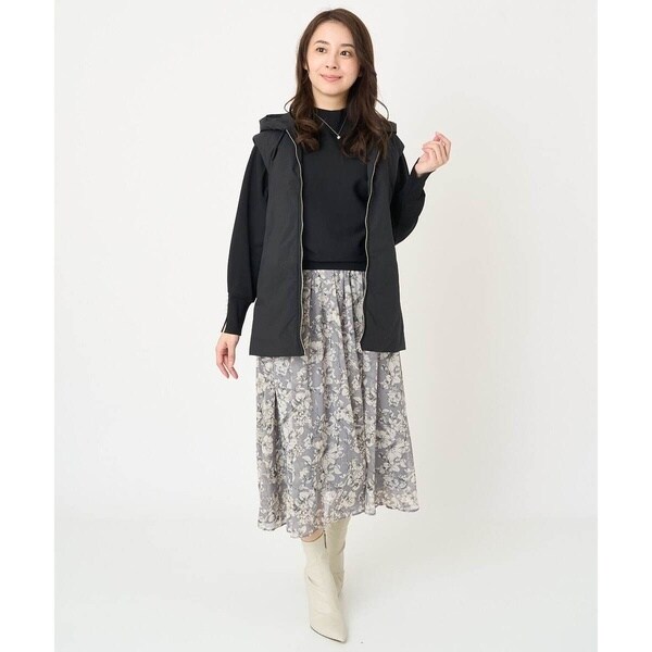 ふんわりと軽やかなシルエットはトップスを選びません。同素材のブラウス【F1BFV01140】とセットアップでワンピース見えの着こなしも楽しめます。
