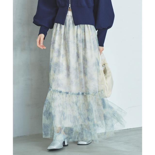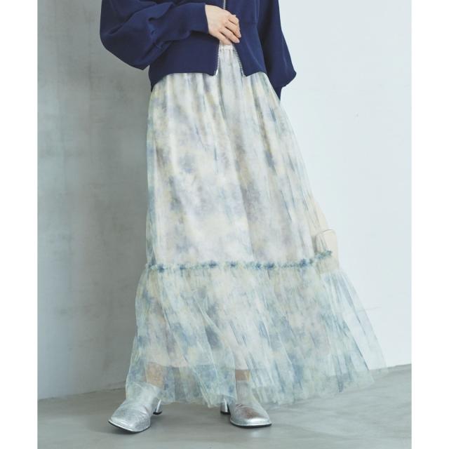 ニュアンス柄チュールスカート