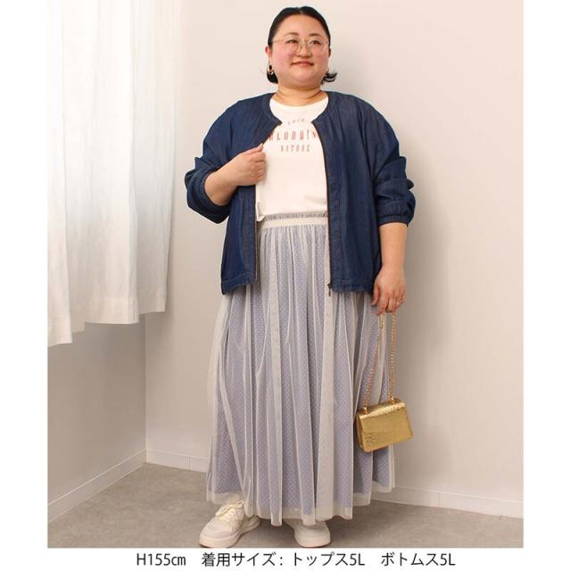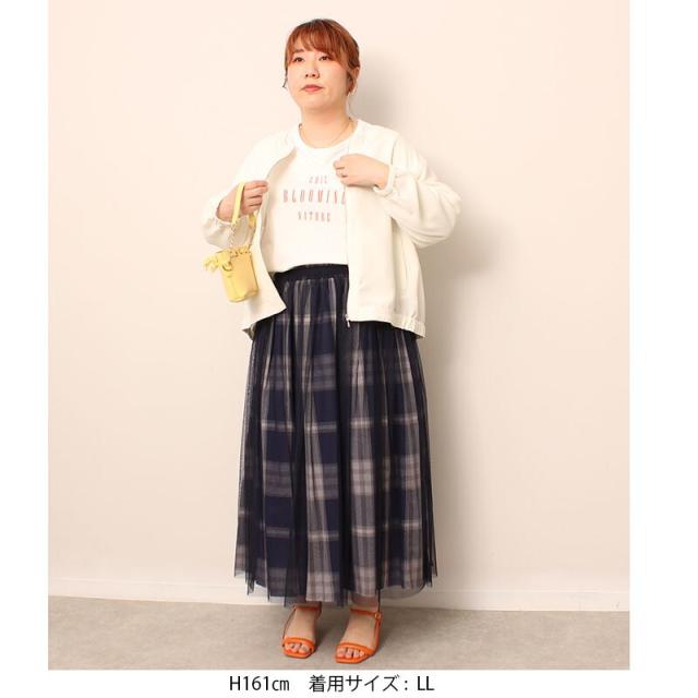 シンプルなアイテムなのでボリュームのあるスカートとの組み合わせは大人可愛い雰囲気になります。