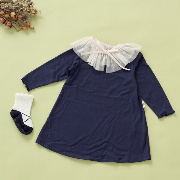 少し大きめなチュールレース襟のカットソーワンピースです。