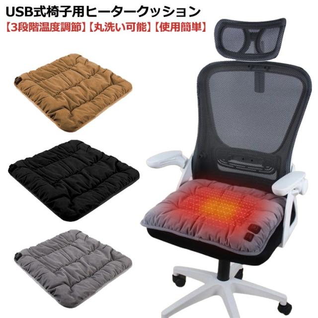 座布団 ヒータークッション 電気 ヒーターマット ホットマット クッション 椅子 フランネル 電気マット ホット座布団 3段階温度調節 椅子クッション USB 一人用 お尻 温め 暖かい 足元 冷え対策 洗える オフィス テレワーク ホットカーペット 滑り止め