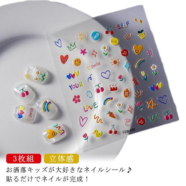 | 3枚組 立体感 お洒落キッズが大好きなネイルシール♪ 貼るだけでネイルが完成! | |