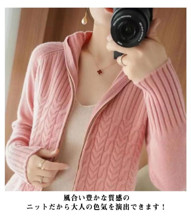 ジップアップ ニット レディース ニットカーディガン ハイネック 立ち襟 ジップアップ カーディガン セーター ジャケット ケーブル編み 長袖 おしゃれ 30代