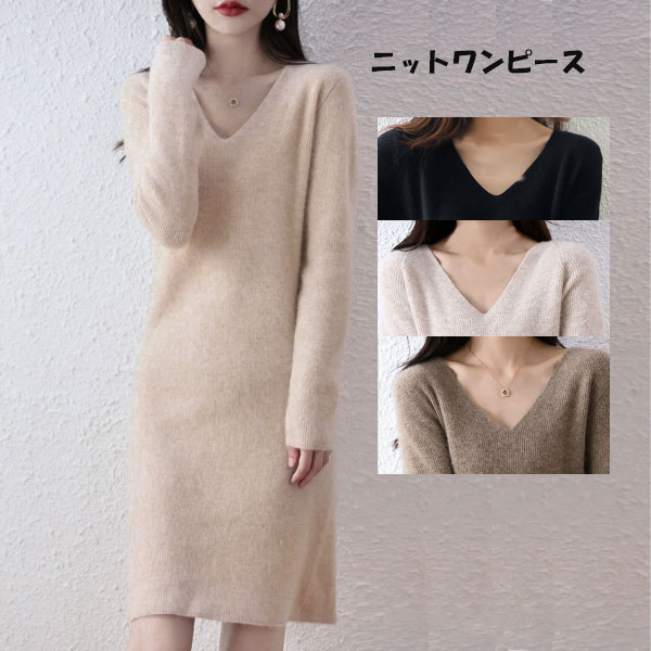 ワンピース ミニ丈 長袖 レディース トップス 春 秋 冬 ニットワンピース 40代 オシャレ 秋冬 無地 ストレートスカート ニットインナー セーター ゆったり 大人