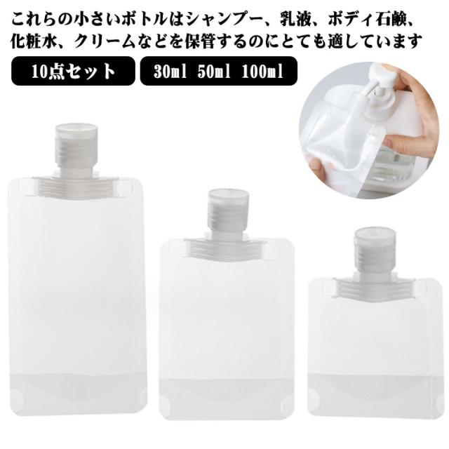 トラベルボトル 10点セット トラベルボトル 漏れ防止 トラベルボトル 100ml 30ml 小分けボトル 詰め替えボトル トラベル液体個包装 持ち運びは便利 出張 旅行用 クリーム 化粧水 乳液 収納 旅行ボトル 使い切り パウチ容器