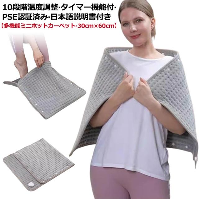 ホットカーペット 電気カーペット フランネル デスク下 ホットマット 電気マット 電気毛布 電気ひざ掛け ホットブランケット 敷毛布 10段階温度調節 タイマー機能付 一人用 30cm×60cm ミニ 洗える 折りたたみ オフィス テレワーク PSE認証済み