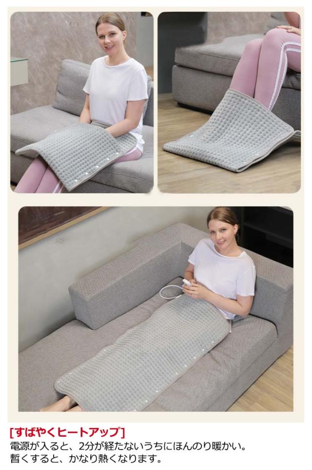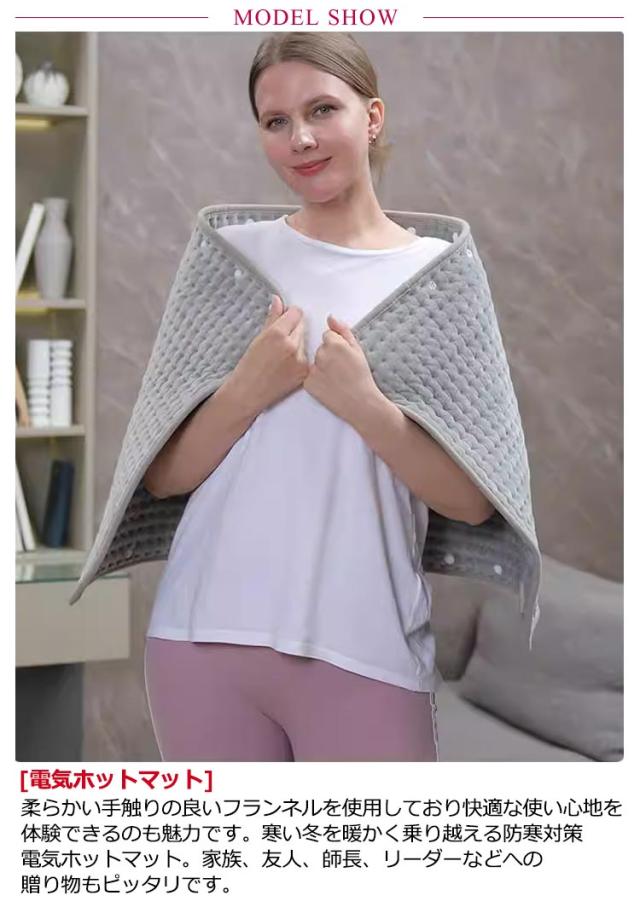 | 10段階温度調整?タイマー機能付?PSE認証済み?日本語説明書付き【多機能ミニホットカーペット?30cm×60cm】 [電気ホットマット] 柔らかい手触りの良いフランネルを使用しており快適な使い心地を体験できるのも魅力です。寒い冬を暖かく乗り越える防寒対策電気ホットマット。家族、友人、師長、リーダーなどへの贈り物もピッタリです。 [10段階温度調整できる敷き電気マット] 温度段階を30℃~60℃の10段階に調節できます。温度が60°以上になった場合、長時間で使用すると、皮膚乾燥や低温やけどなどの恐れがあるので気を付けてください。 [タイマー機能付きの一人用ミニカーペット] 45分、90分、120分のタイマー設定可能。 [すばやくヒートアップ] 電源が入ると、2分が経たないうちにほんのり暖かい。暫くすると、かなり熱くなります。 [丸洗い可能] 丸ごとで洗濯機で洗濯が可能です。ホットマットをお手入れする際は、必ず電源を抜いてください。 | |