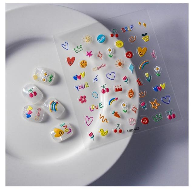 | 3枚組 立体感 お洒落キッズが大好きなネイルシール♪ 貼るだけでネイルが完成! | |