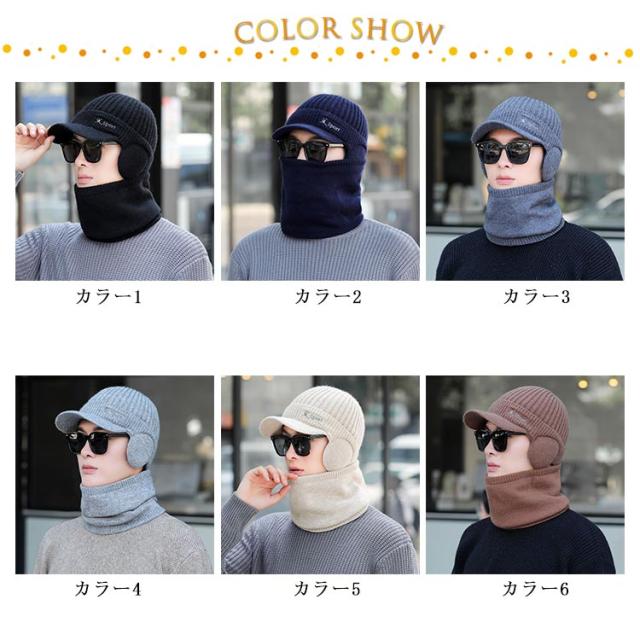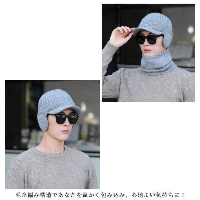 | 耳あて付きニット帽とマフラーのセットを取り入れて、いつものコーデとは違う印象を与えましょう。 帽子はつば付きで、寒い冬に防風防寒力UPされるとともに、つばが顔のラインを隠し小顔効果もUPされます。 毛糸編み構造であなたを温かく包み込み、心地よい気持ちに! ニット帽はコーディネートしやすいシンプルなデザインで、どんなスタイルにも合わせることが出来る。 | |
