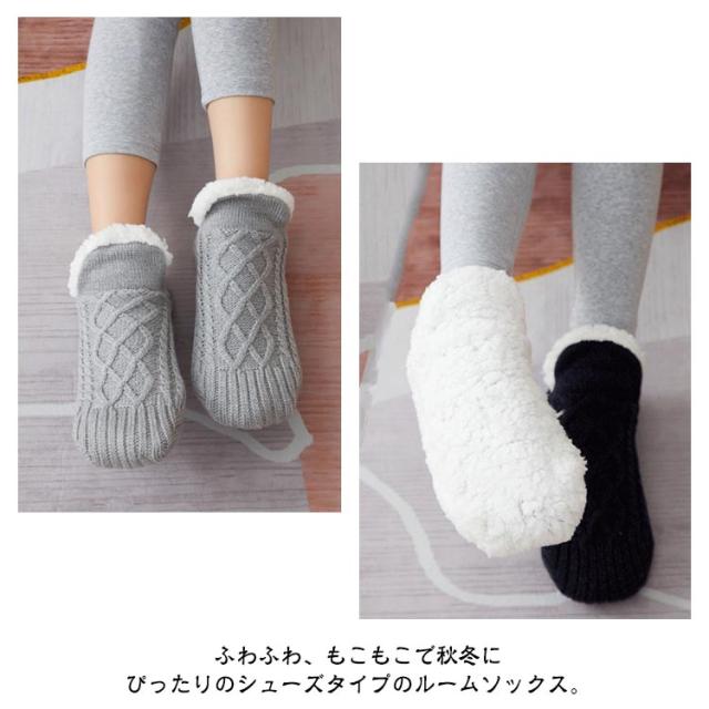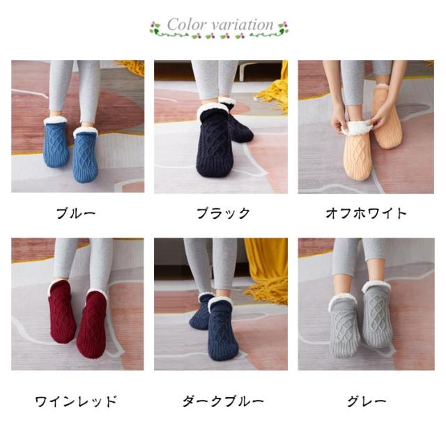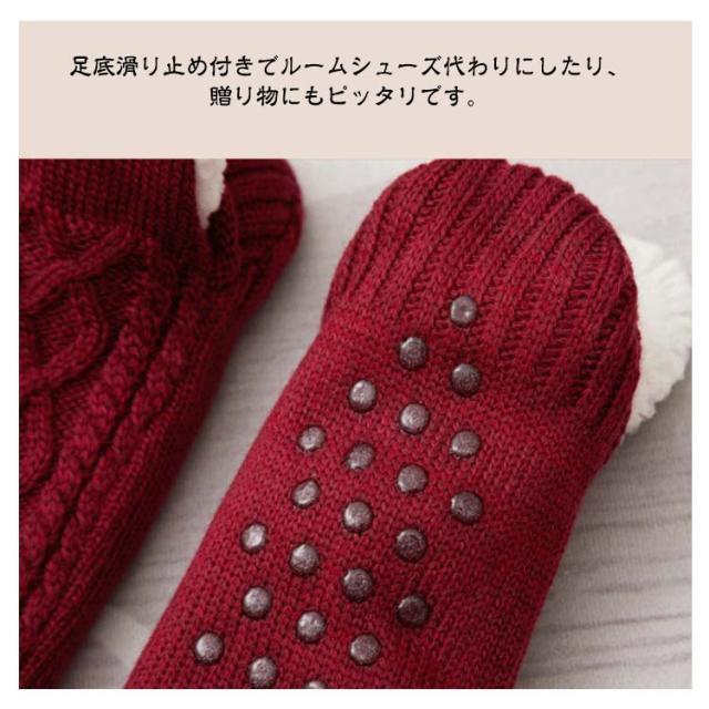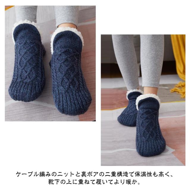 ルームソックス ニットソックス 裏ボア 裏起毛 靴下 レディース メンズ ニット靴下 厚手 ケーブル編みルームソックス 部屋着 暖かい 秋 冬 防寒 冷え防止 足元 冷え対策 保温 くつした 室内履き ブルー ブラック ワインレッド ダークブルー グレー オフホワイト 送料無料