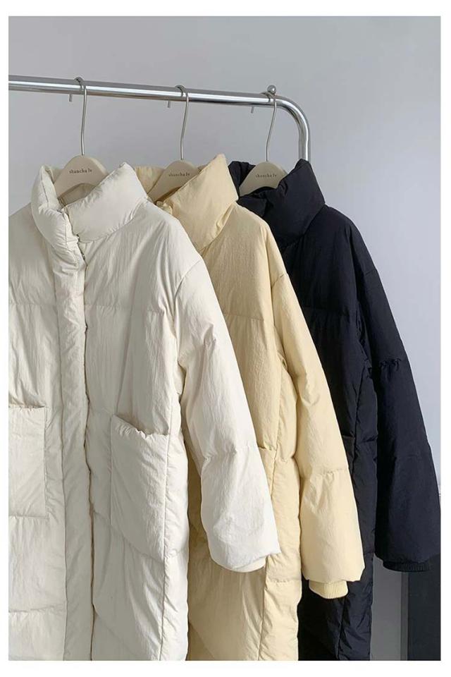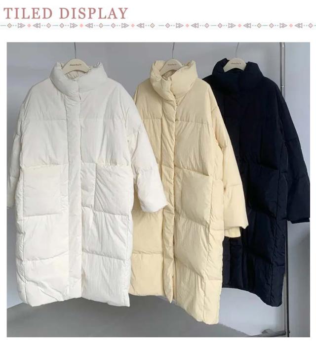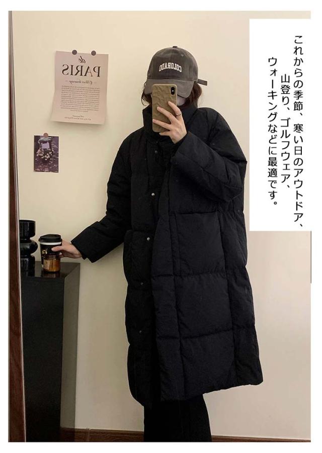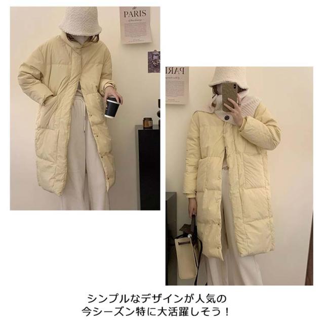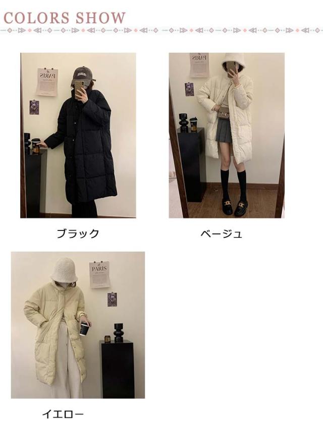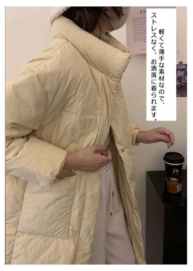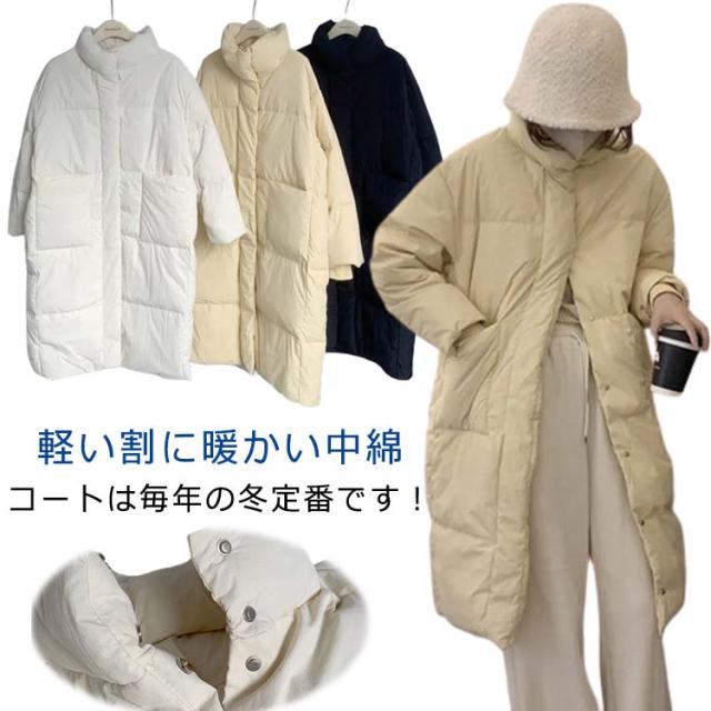 ロングジャケット ダウンコート レディース 中綿ジャケット ブルゾン 軽量 立ち襟 ダウンジャケット ゆったり おしゃれ 無地 シンプル 着?せ 韓国風 あったか フェイクダウン ロング丈 アウター 防寒着 きれいめ 体型カバー お出かけ