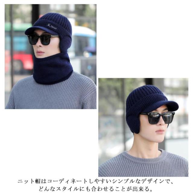 メンズ 冬 ニットキャップ スヌード 耳あて 防寒対策 つば付きニット帽 帽子 ぼうし 無地 帽子 つば付き 冬 2点セット 防寒グッズ おしゃれ ネックウォーマー スノーボード スノボ ゴルフ プレゼント