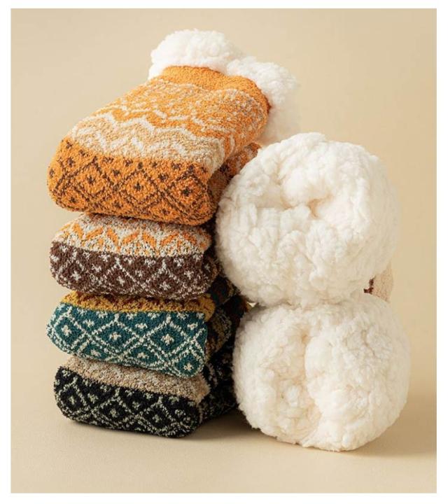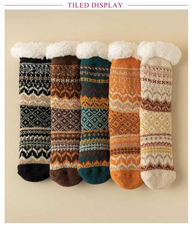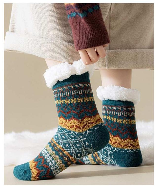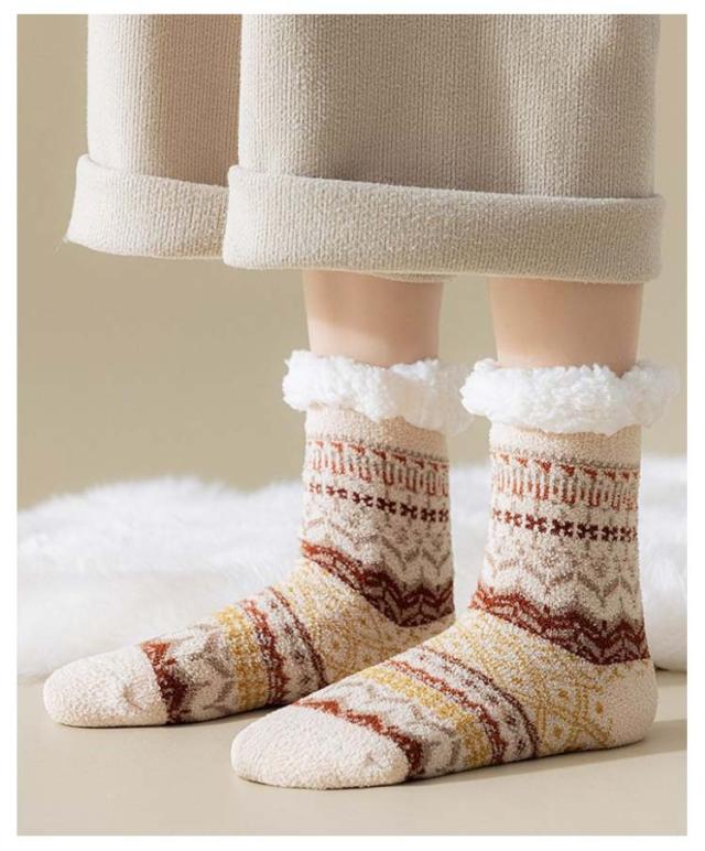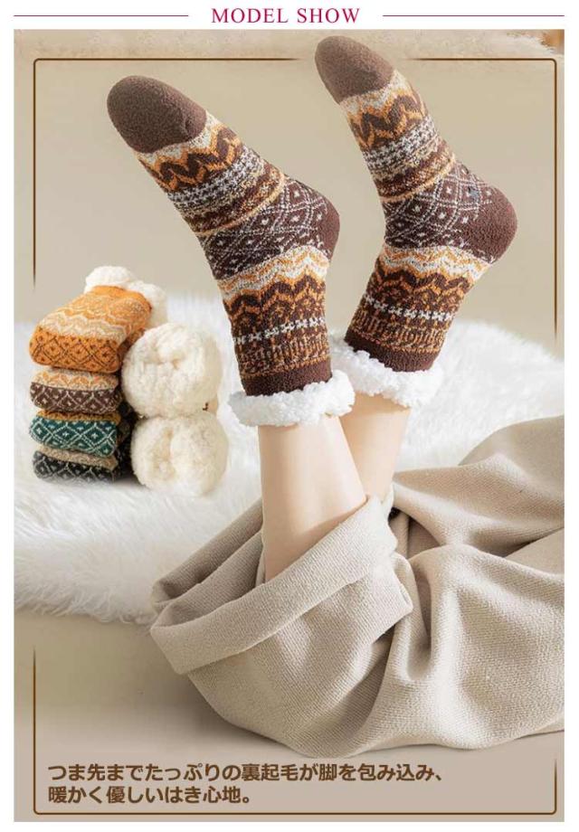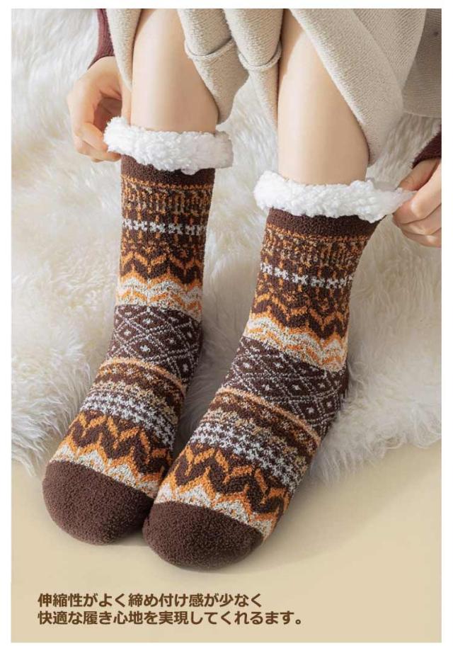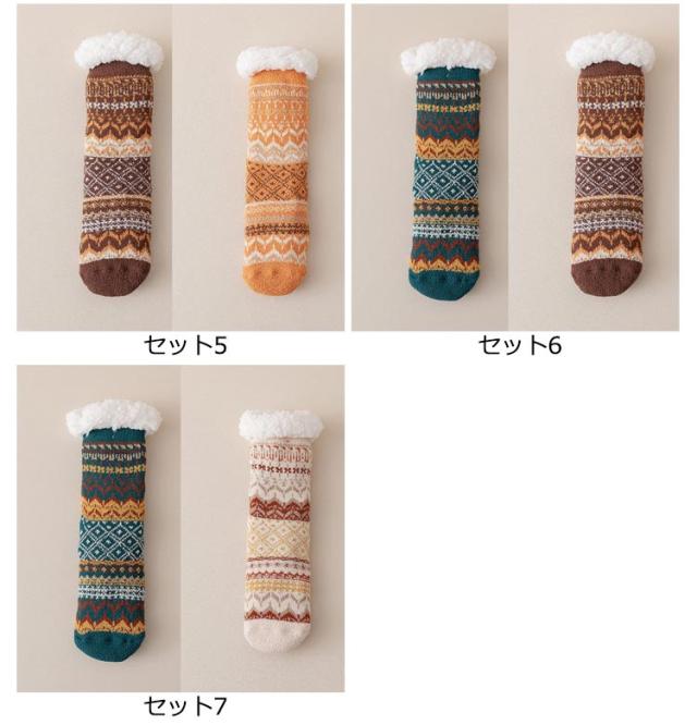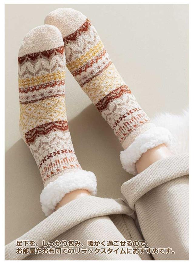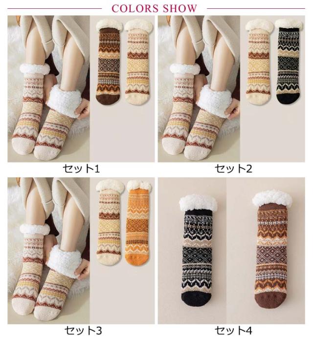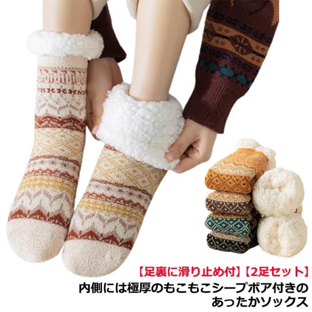 2足セット 裏起毛 靴下 レディース あったか靴下 ふわふわ もこもこ くつした ルームソックス 滑り止め ゆったり ジャガード柄 ソックス 厚手 防寒 ぽかぽか もこもこ靴下 シープボア 極厚 暖かい 発熱 保温 冷えとり あったかソックス 総柄 かわいい 【送無】