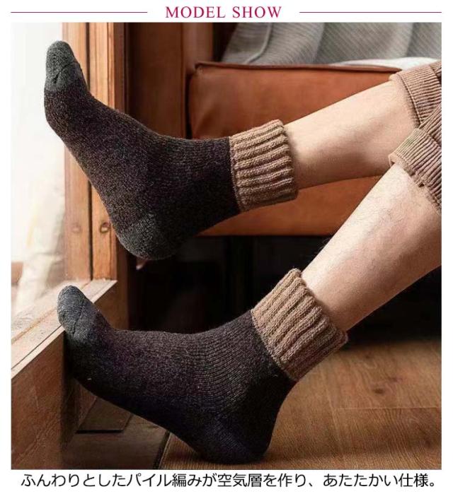 靴下 くつした メンズ ウール混 あったか靴下 裏パイル 裏毛 厚手 あったかソックス 冬用 防寒 ぽかぽか ウールソックス 発熱 保温 冷えとり 足元 暖かい ソックス くつ下 配色 シンプル 黒 紺 グレー ネイビー ベージュ 【送無】
