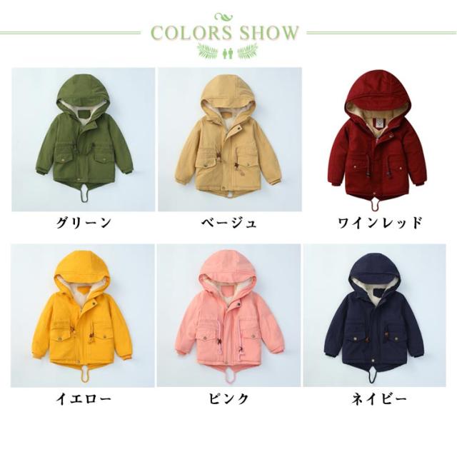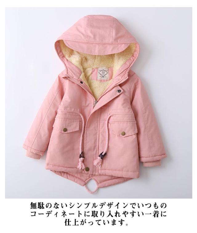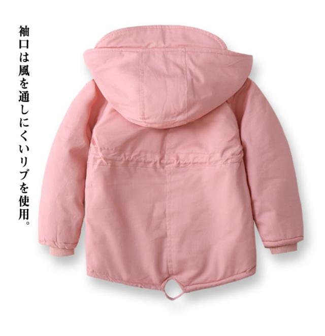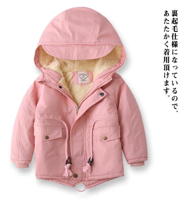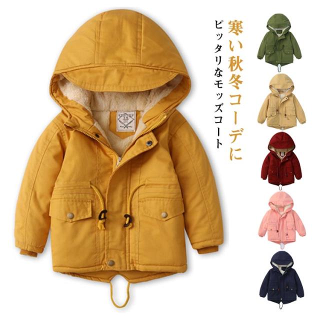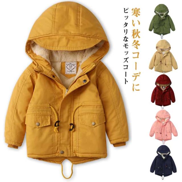 100~140cm 裏ボア モッズコート 中綿ジャケット 子供服 あったか アウター ボアジャケット 子供コート フード付き ミドル丈 子供服 ミリタリージャケット 男の子 女の子 ジュニア 秋冬 防寒 保温 無地 かわいい おしゃれ 通学 通園