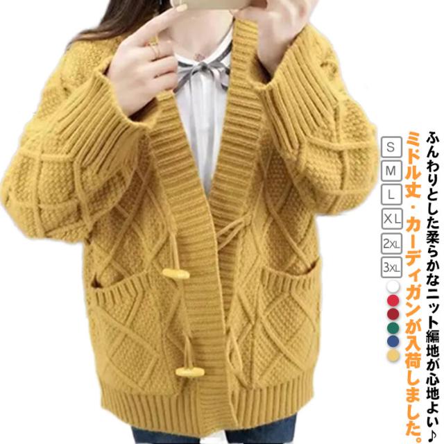 カーディガン レディース トグルボタンダッフル風 ニット ニットカーディガン ニットトップス 羽織り ダブルコート ドロップショルダー トグルボタン カジュアル 女性 ゆったり 体型カバー 大人可愛い きれいめ カジュアル