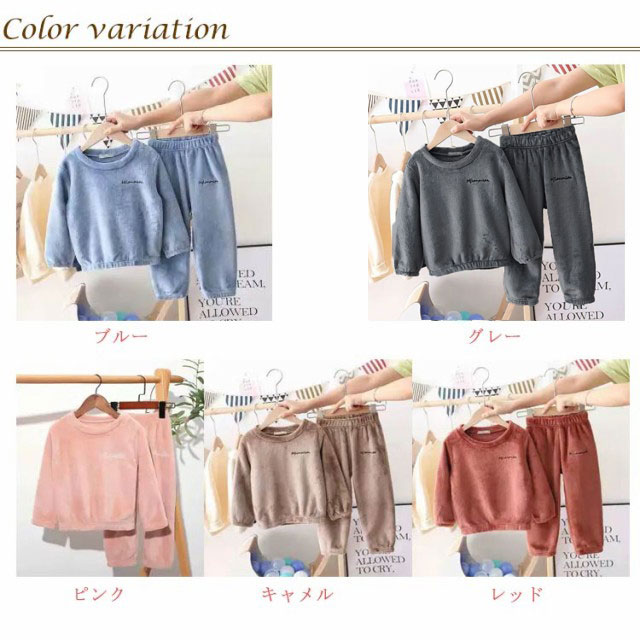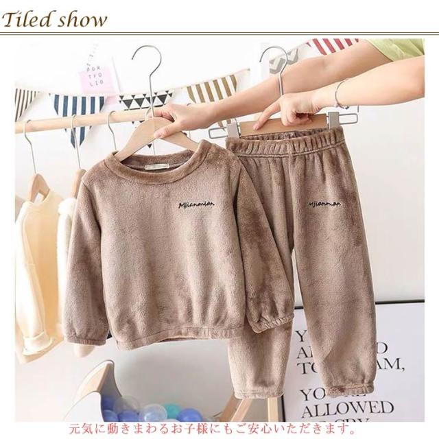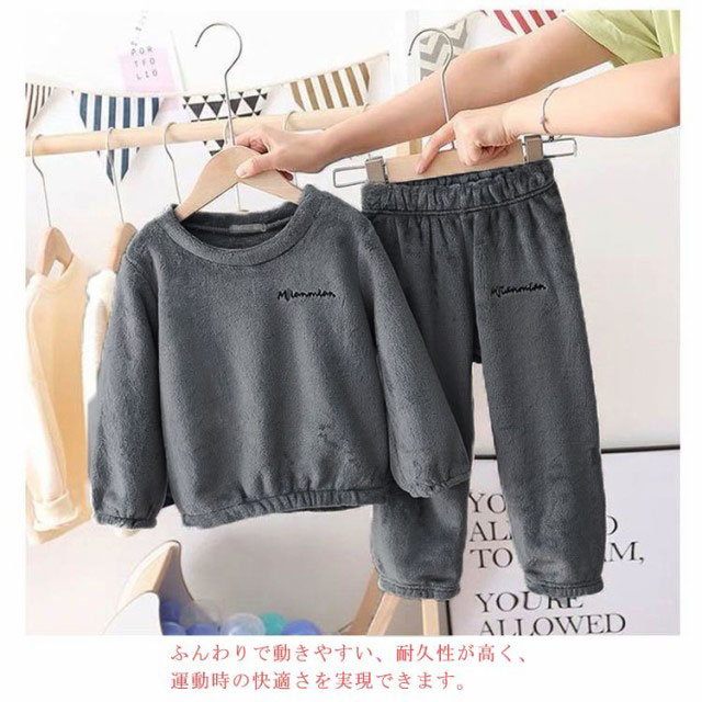 送料無料 ボアフリース パジャマ 100-160cm キッズ 上下セット プルオーバー 秋冬 部屋着 長袖 ルームウェア 丸襟 トップス 長ズボン もこもこ ふわふわ 厚手 防寒 保温 無地 暖か 女の子 男の子 暖かい 110 120 130 140 150 子ども服 大きいサイズ