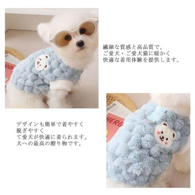 | 【柔らかい材質】 サンゴフリース 材質は柔らかく 、快適で、暖かい感じ、触り良く、伸縮性と通気性あって、運動でも邪魔にならなくて、保温性も高い。繊細な質感と高品質で、ご愛犬・ご愛犬猫に暖かく快適な着用体験を提供します。 【保温】内側に裏地にはポカポカと暖かいコットンを使用します、寒い季節にも手軽に防寒できるのでとにかく使いやすいです。デザインも簡単で着やすく脱ぎやすくて愛犬が快適に着られます。 【着脱が簡単】犬への最高の贈り物です。ペットと一緒に散歩します。同じ服のスタイルを使用し、赤ちゃんの家族を赤ちゃんに合わせて、赤ちゃんと一緒に遊んで、犬を楽しい服装にできます。 【猫犬通用】犬でも猫でも着られますよ。抜け毛もくっつかなく、伸縮性があり動きやすい素材で、遊ぶ時、眠る時、メリハリをつけた生活をしたいわんちゃんにも最適です。 | |