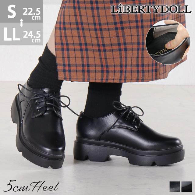 靴 レディース オックスフォード ミドルヒール レースアップ 低反発 厚底 5cmヒール 軽い No.3030 22.5-24.5cm 歩きやすい リバティードール