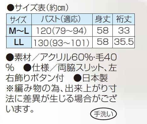 ※編み物の為、出来上がり寸法に差異が生じる場合がございます。