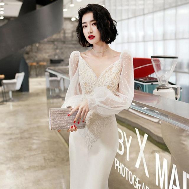 イブニングドレスの女性2023新品宴会気質ロングセクシー幻想的な森系ワンピース マーメイドラインドレス