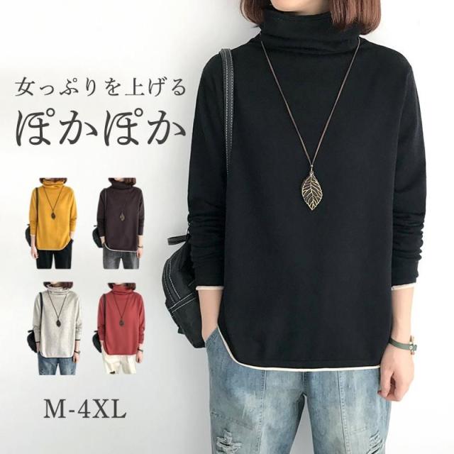 送料無料 トレーナー レディース 長袖 Tシャツ ハイネック 防寒 暖かい 無地 シンプル 秋冬 可愛い 着痩せ 40代