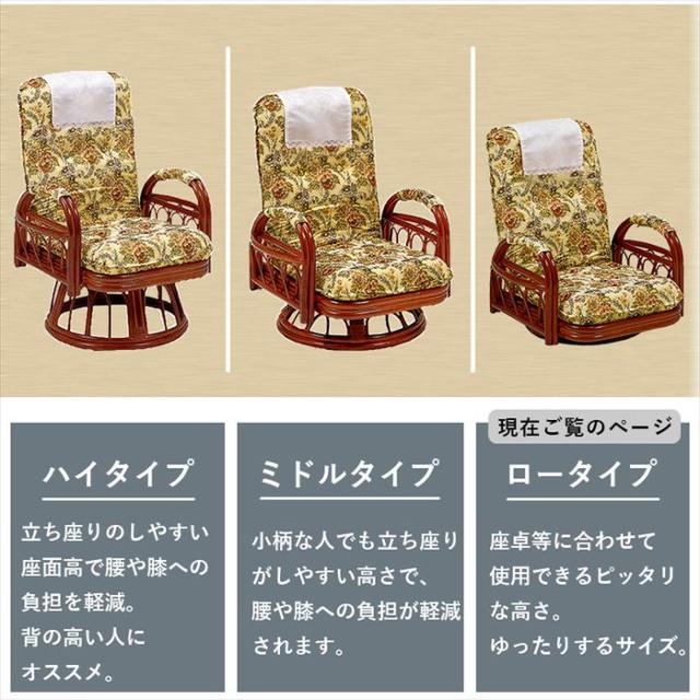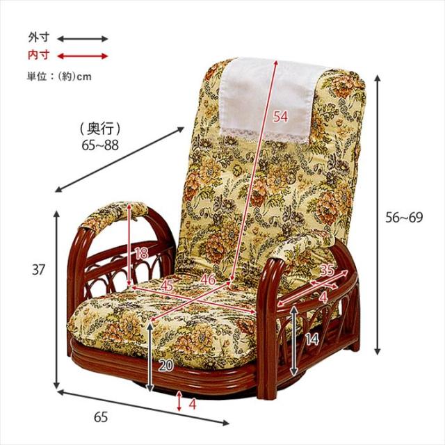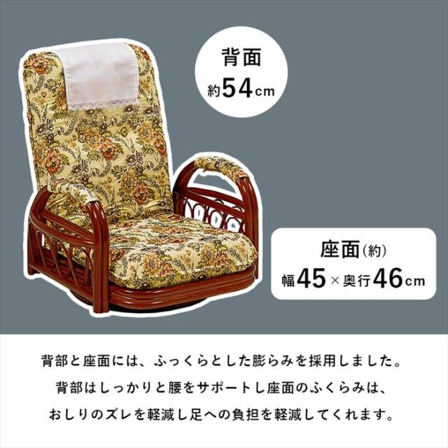 座椅子 回転式 リクライニング 通販 RZ-921 回転座椅子 肘付き 座いす 肘掛け リクライニングチェア 回転いす ハイバック ロータイプ 籐製 ラタン 360度回転 高齢者 おしゃれ 花柄 シンプル 家具 インテリア