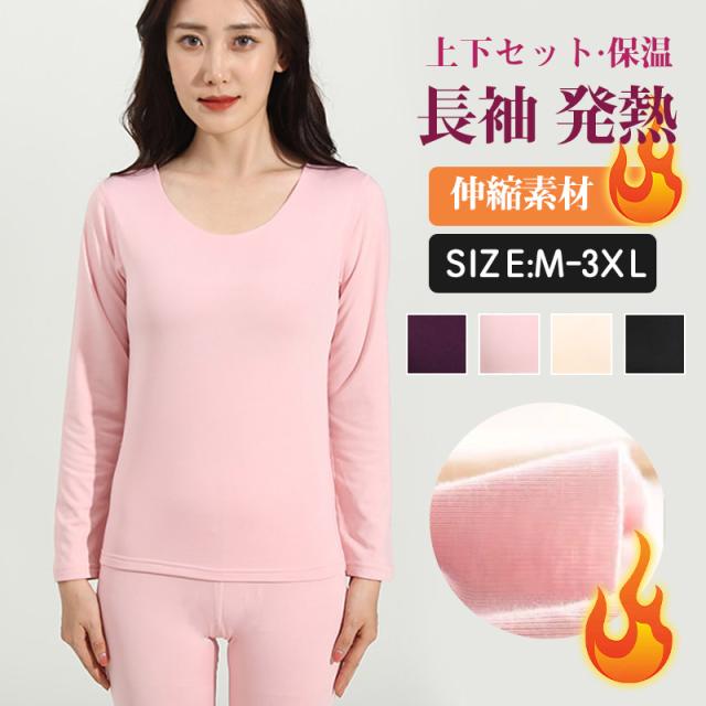 インナー レディース インナーセット 保温 発熱インナー 上下セット あったか 長袖 発熱 裏起毛 無地 肌着 ロングパンツ 暖かい 防寒インナー
